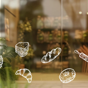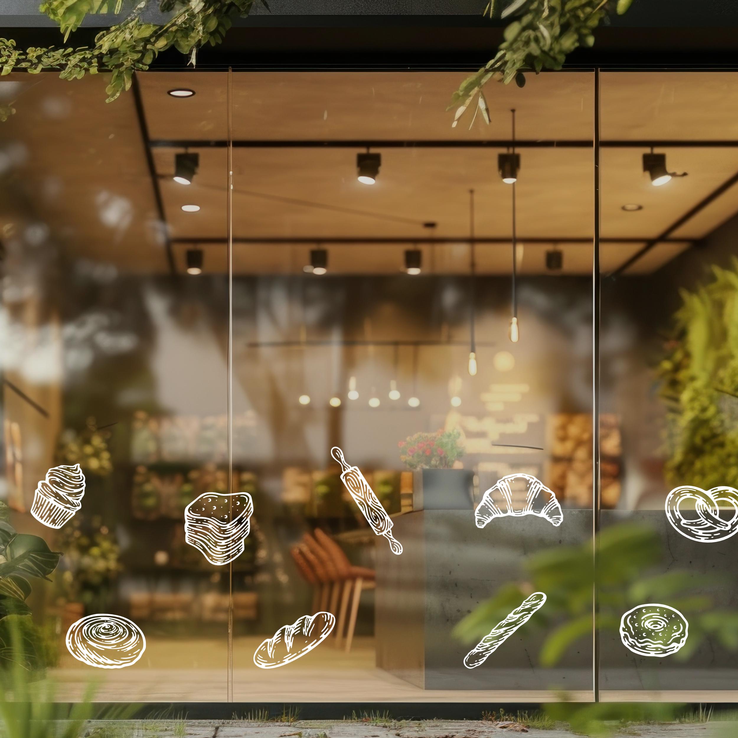 Pack de 9 stickers boulanger en vinyle – autocollants personnalisés pour vitrine de boulangerie