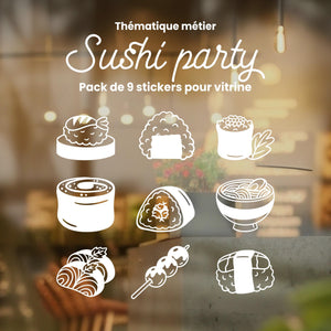 Pack de 9 stickers Sushi en vinyle – autocollants pour vitrine de restaurant japonais, voiture, moto, ordinateur, cuisine, déco murale