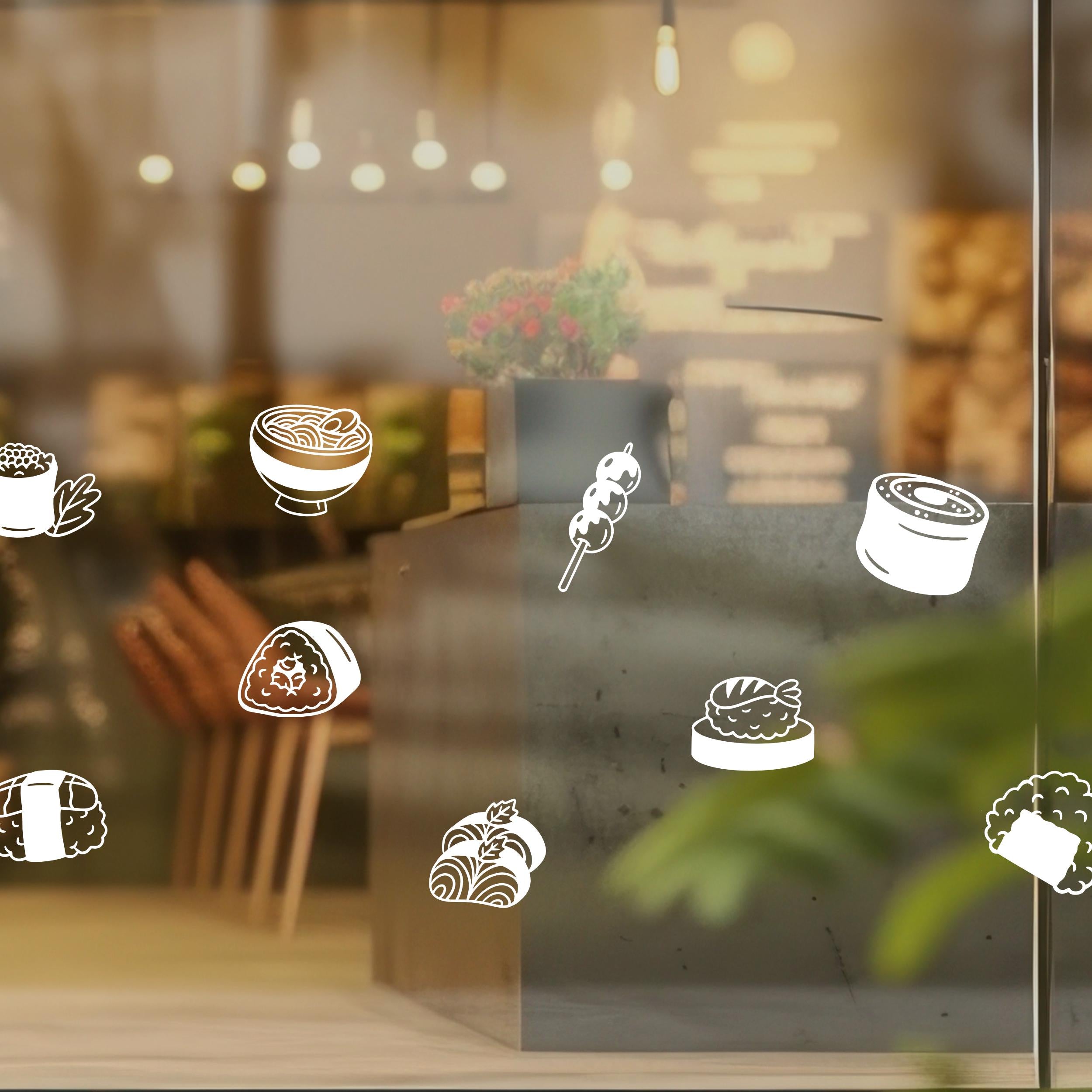 Accueil Décorations pour vitrines Pack de 9 stickers Sushi en vinyle – autocollants pour vitrine de restaurant japonais, voiture, moto, ordinateur, cuisine, déco murale