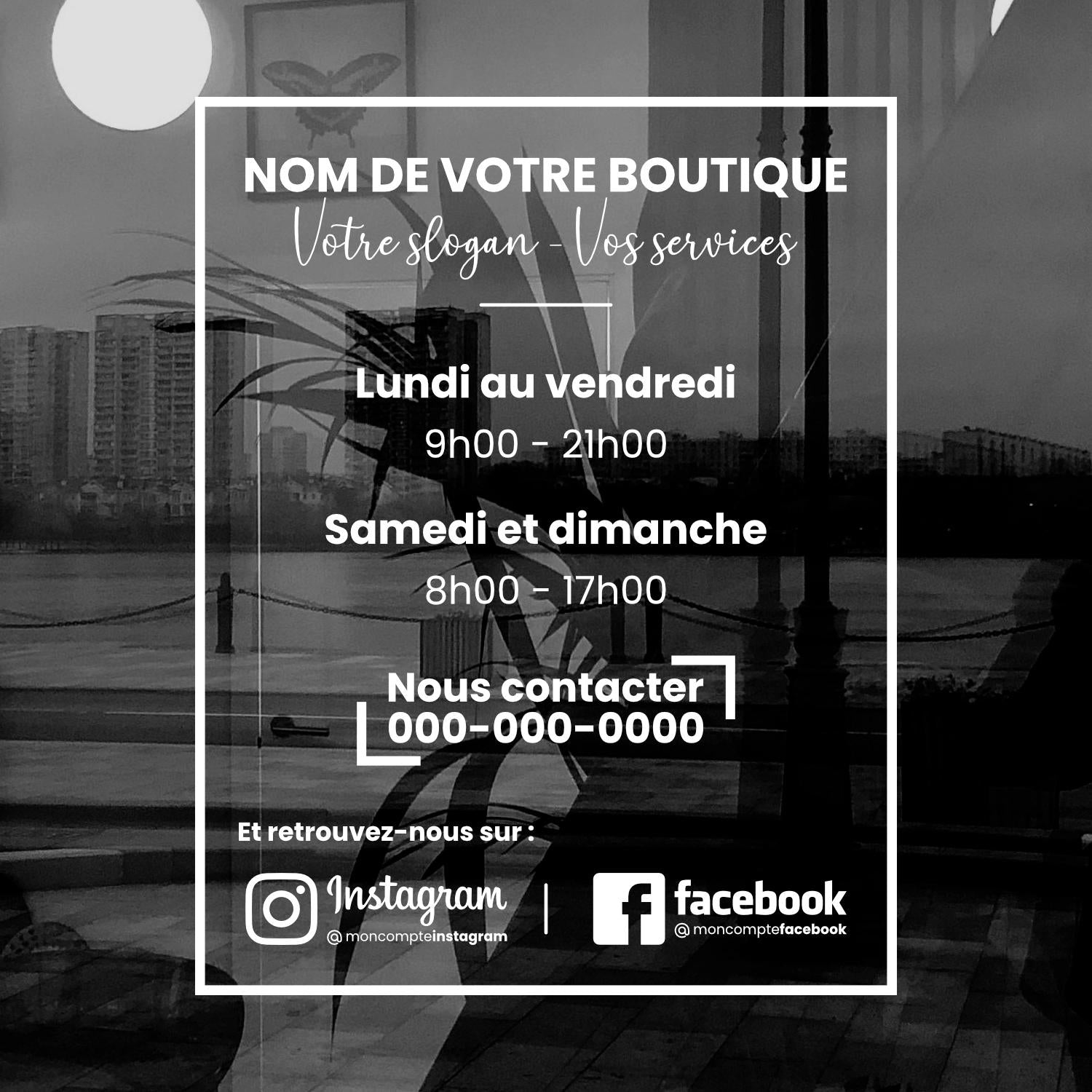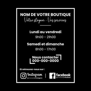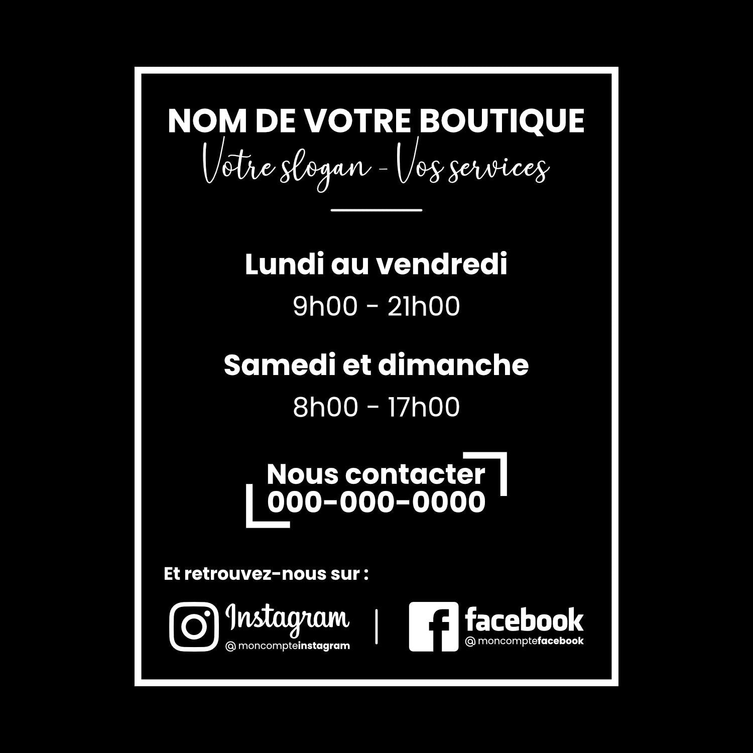 Sticker horaires d’ouverture vitrine | Autocollant vitrophanie heures d’ouverture magasin, salon de coiffure, restaurant, café et commerces