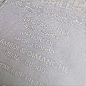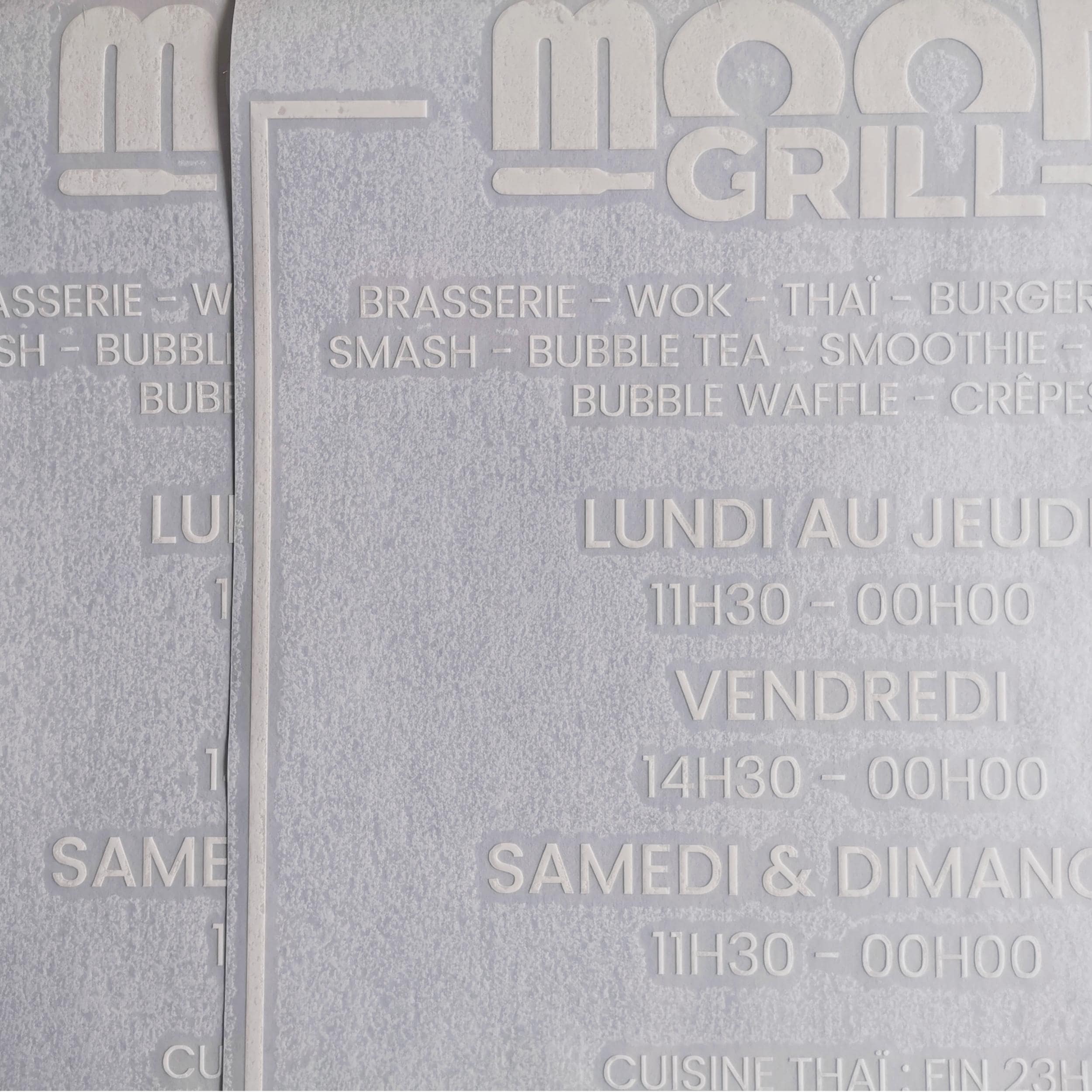 - Pose intérieure : le sticker se colle à l’intérieur de la vitrine, mais reste lisible depuis l’extérieur. Idéal pour protéger le visuel des intempéries.