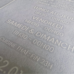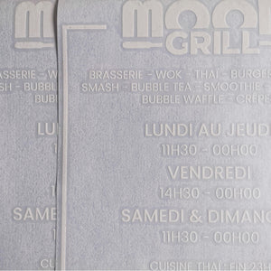 -Pose extérieure : le sticker se colle directement à l’extérieur de la vitrine, pour une lecture depuis l’extérieur également. Parfait si votre vitrine ne permet pas une pose intérieure.