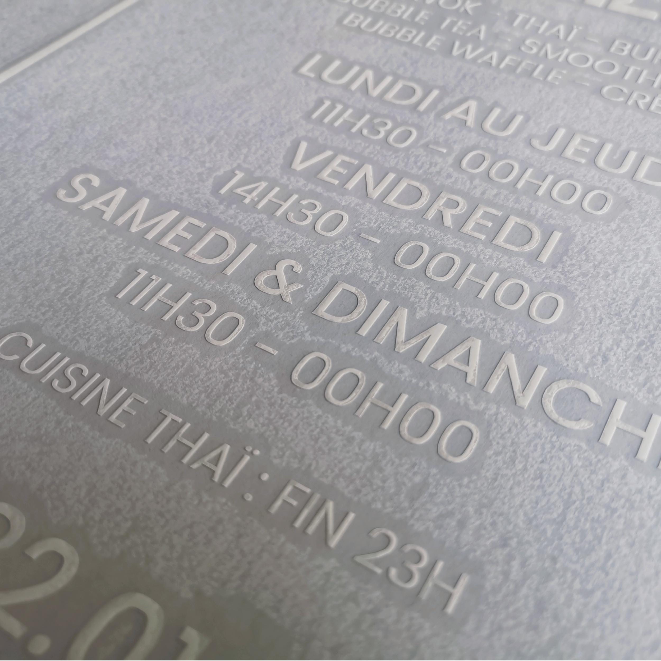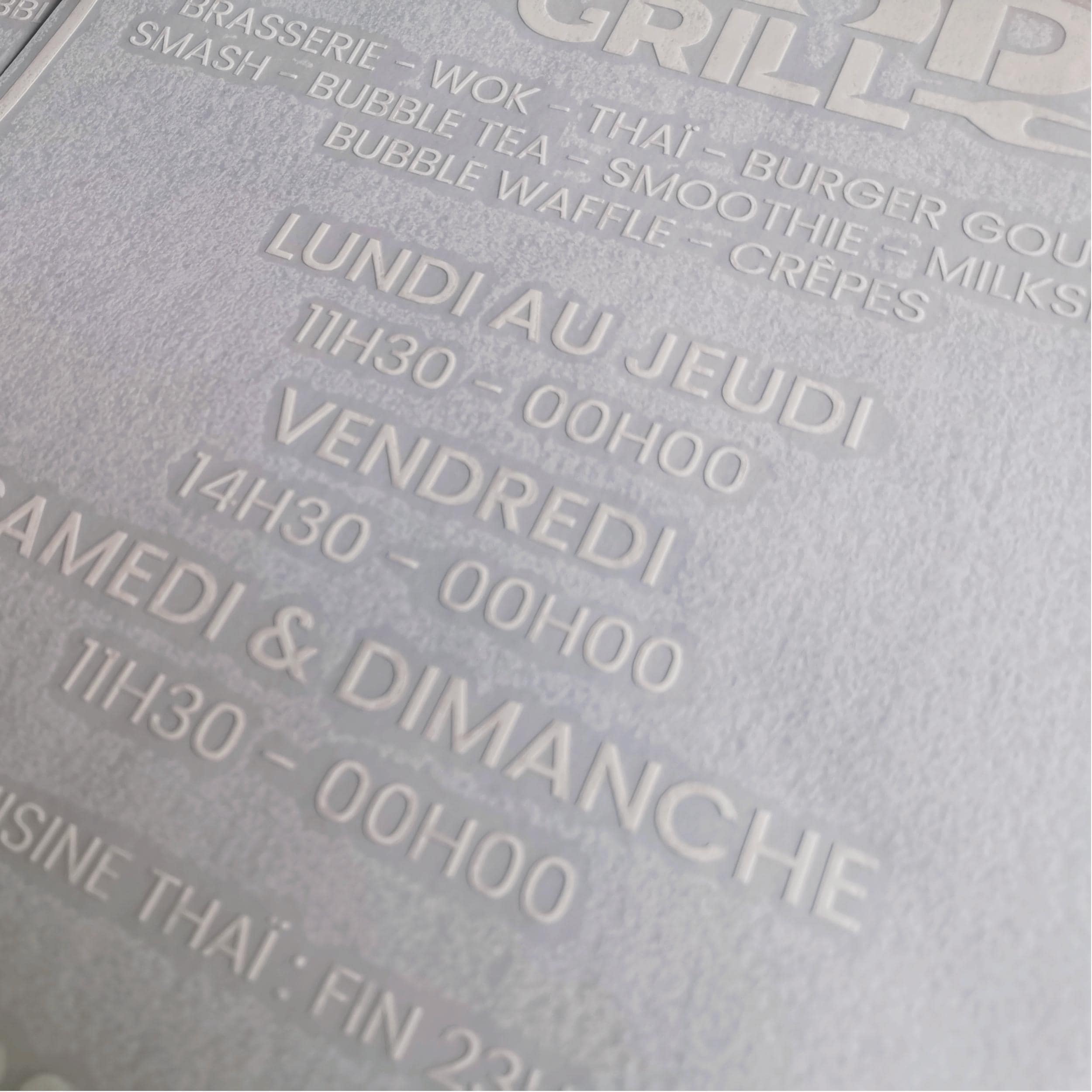 Nous proposons des modèles de vitrophanies horaires pour informer et communiquer vos horaires d’ouverture et vos services sur votre vitrine.