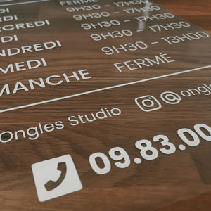 Nous proposons des modèles de vitrophanies horaires pour informer et communiquer vos horaires d’ouverture et vos services sur votre vitrine.
