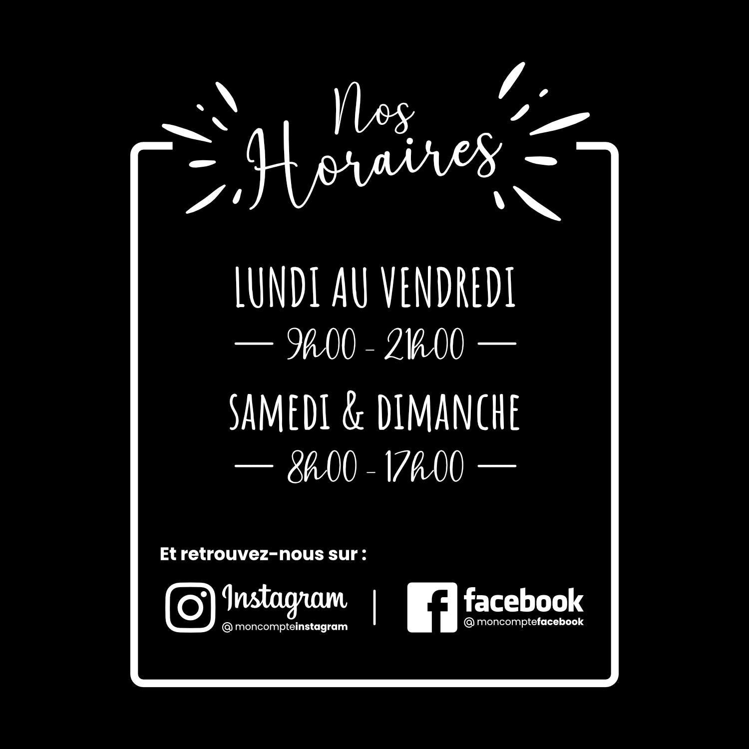Sticker horaires d’ouverture vitrine | Autocollant vitrophanie heures d’ouverture magasin, salon de coiffure, restaurant, café et commerces