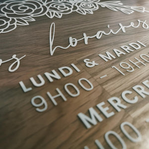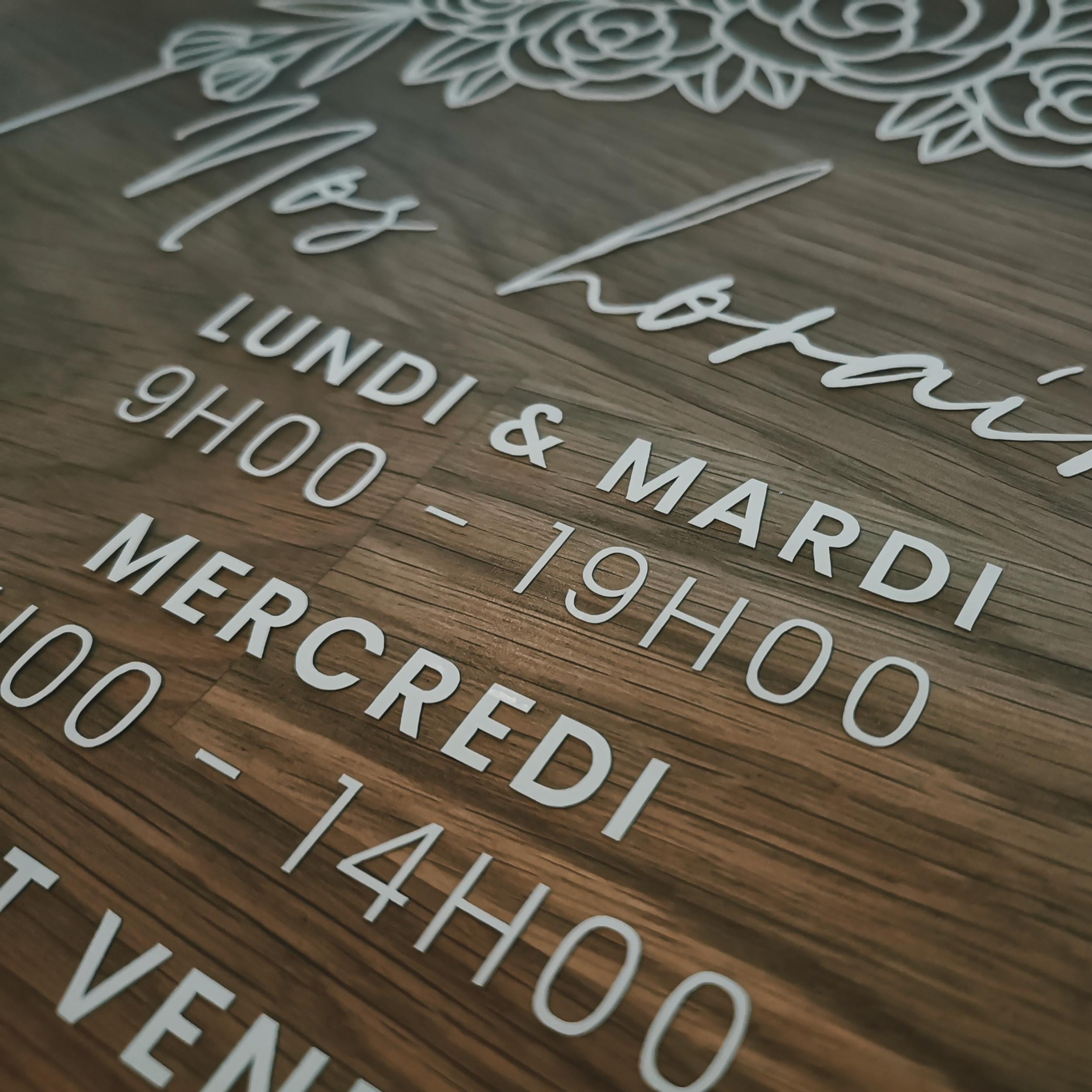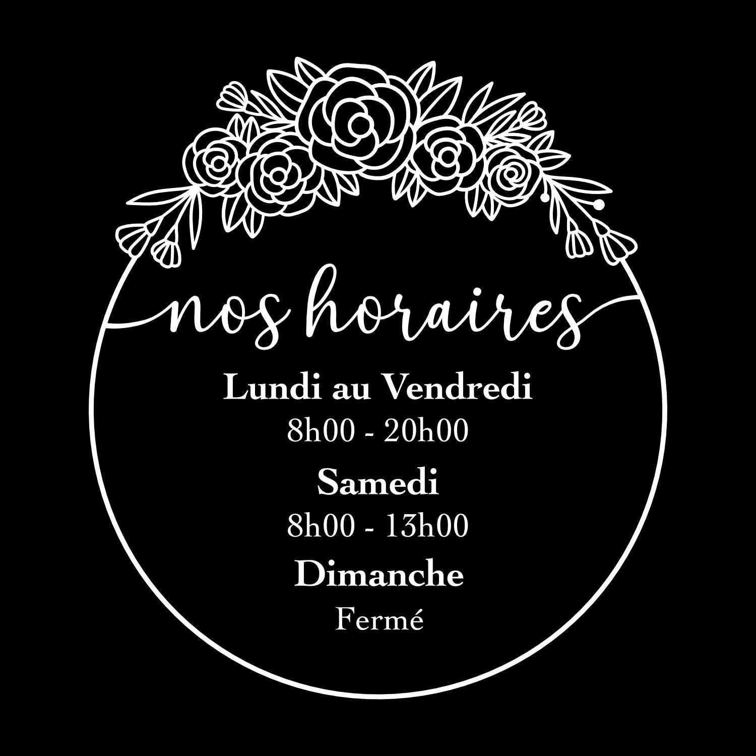 Nous proposons des modèles de vitrophanies horaires pour informer et communiquer vos horaires d’ouverture et vos services sur votre vitrine.
