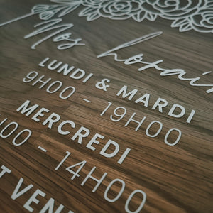 Sticker horaires d’ouverture vitrine | Autocollant vitrophanie heures d’ouverture magasin, salon de coiffure, restaurant, café et commerces