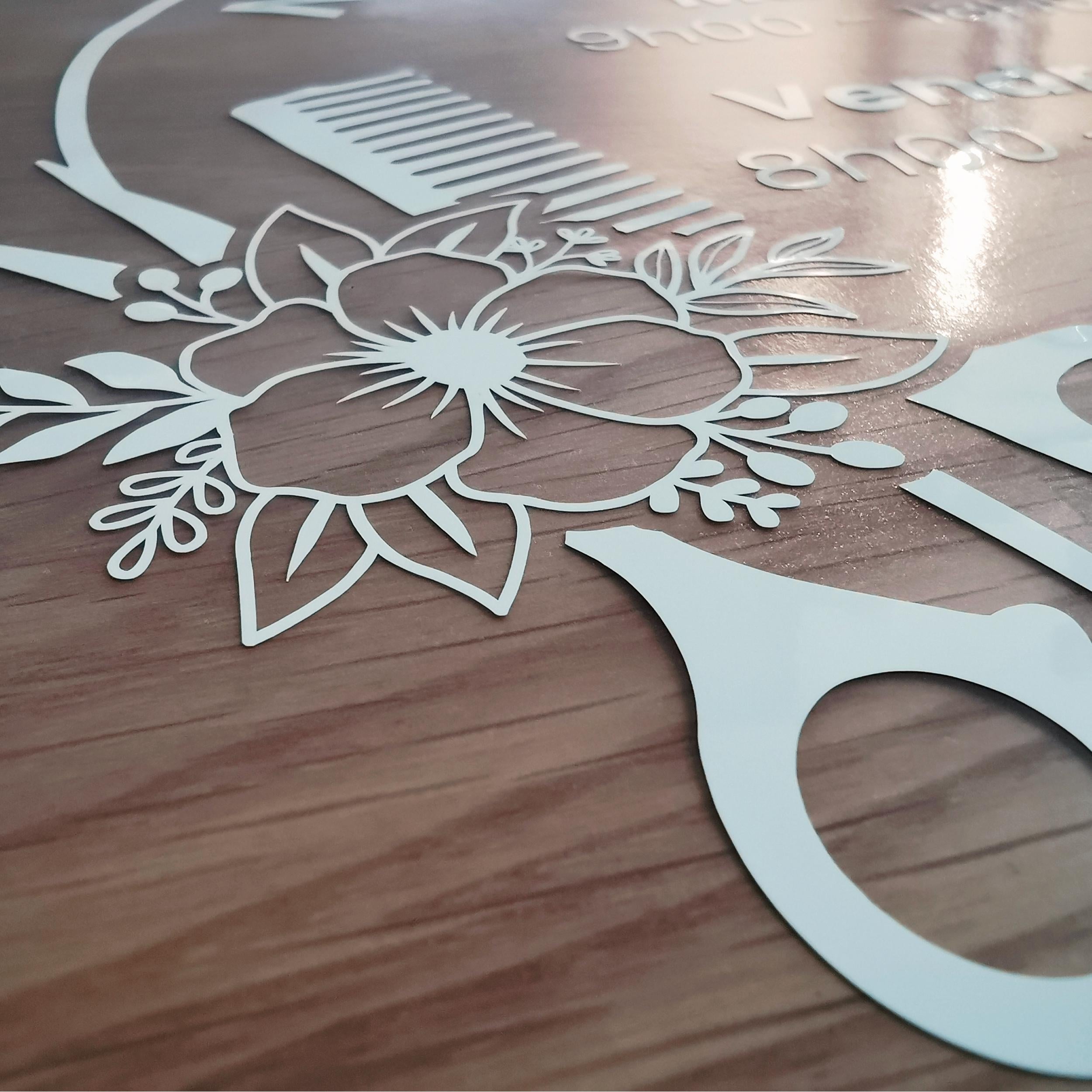 Un lettrage adhésif sur mesure pour votre magasin, boutique, coiffeur, restaurant et autres commerces.