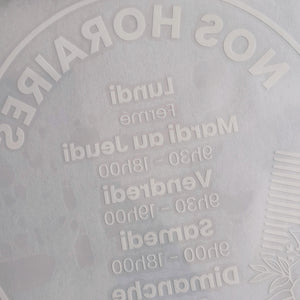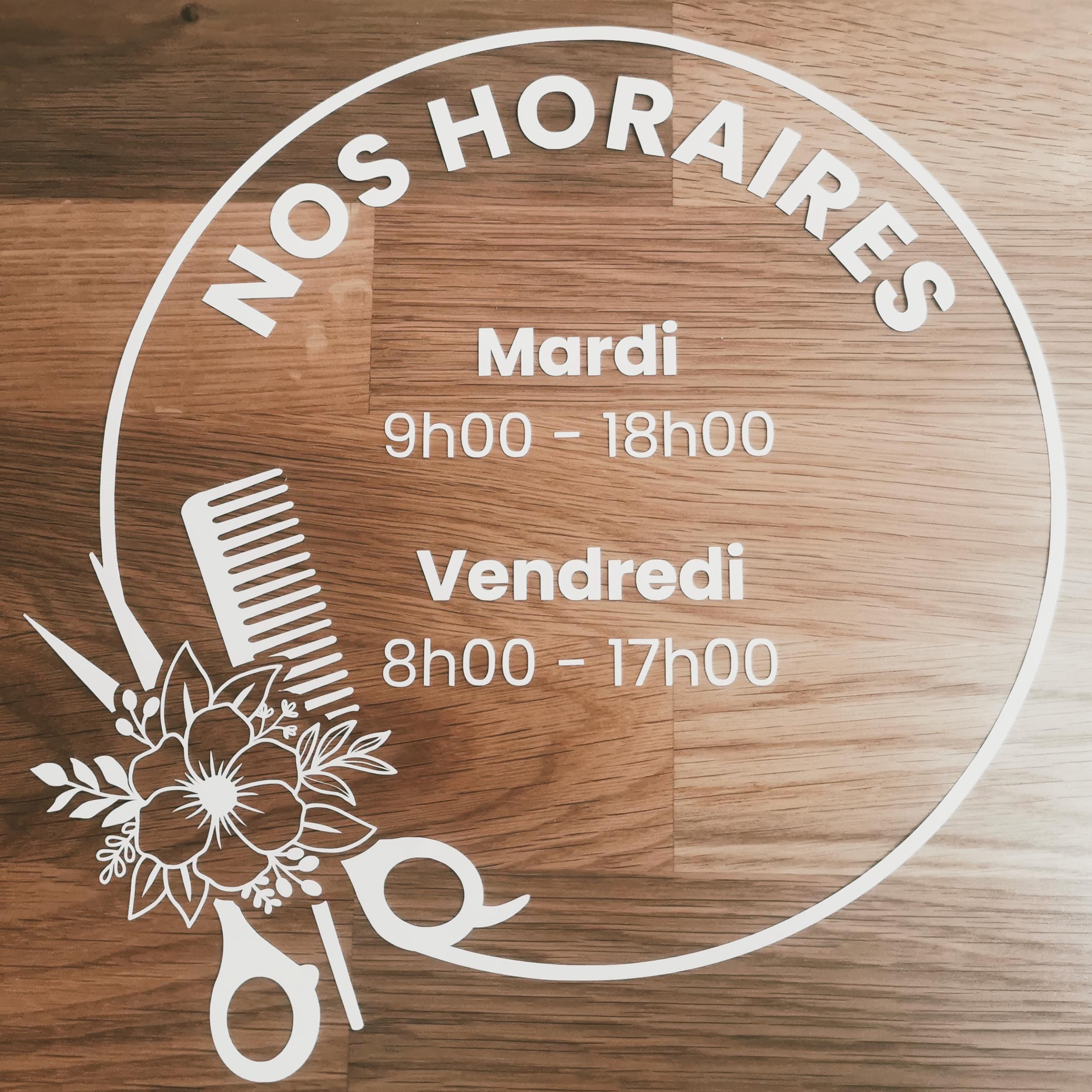 Sticker horaires d’ouverture vitrine | Autocollant vitrophanie heures d’ouverture salon de coiffure