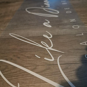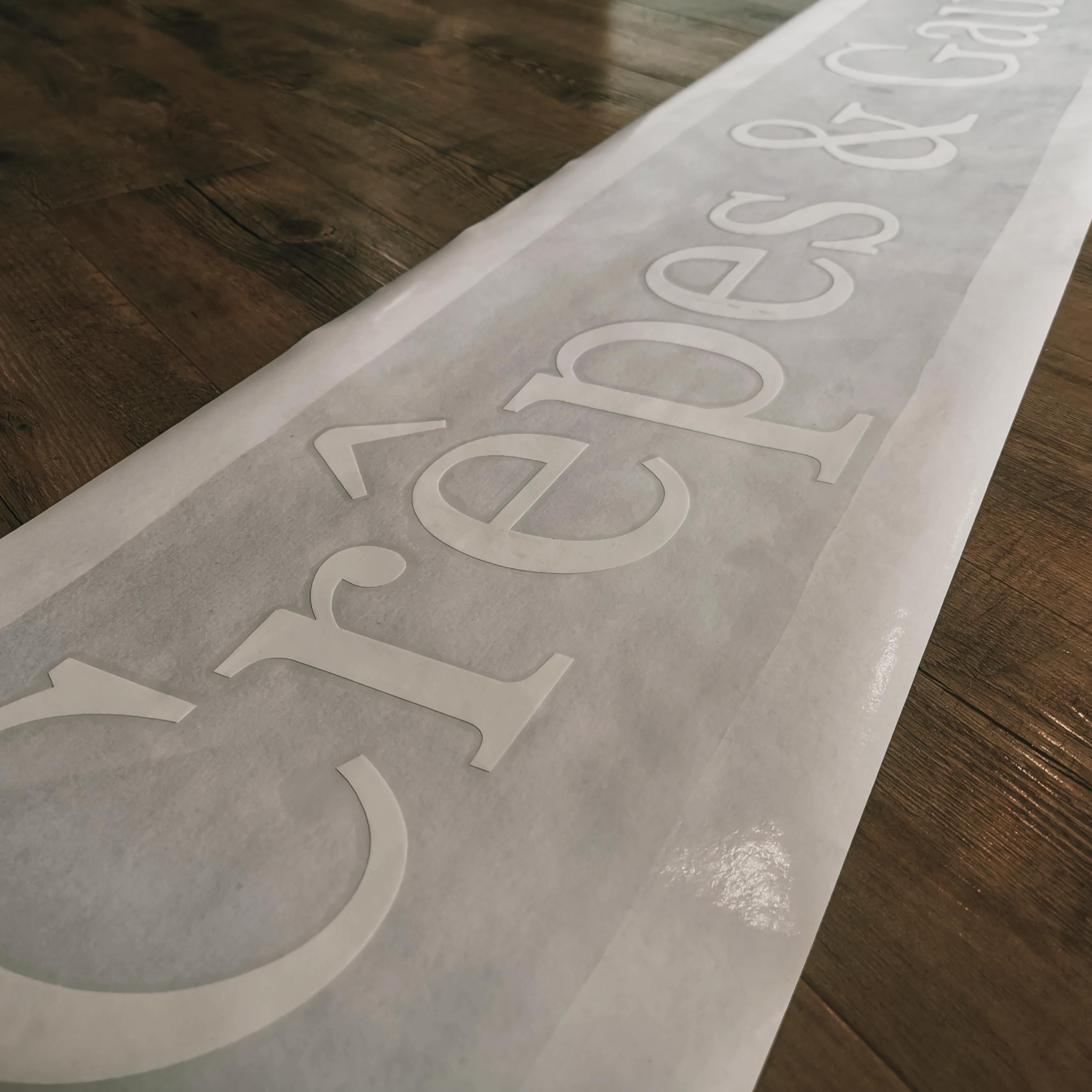 - Pose intérieure : le sticker se colle à l’intérieur de la vitrine, mais reste lisible depuis l’extérieur. Idéal pour protéger le visuel des intempéries.
